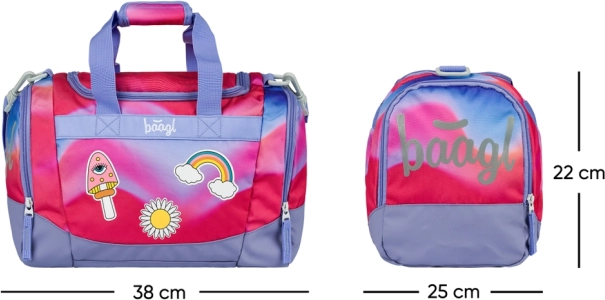 Schenken Sie Kindern Praktikabilität und Freude an Farben. Die BAAGL Kindersporttasche Regenbogen Rot kombiniert leichte Konstruktion mit durchdachtem Innenraum und robusten Materialien. Dank des breiten Deckels lässt sich die Tasche leicht packen, ein separates Fach hält die Schuhe getrennt und Kleinigkeiten finden Platz in einem kleinen Täschchen.