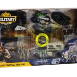 Erleben Sie Abenteuer mit diesem Militärset, das unbegrenzte Spielmöglichkeiten bietet. Das Set umfasst ein Militärfahrzeug mit Sound- und Lichteffekten, was jeder Mission zusätzliche Realitätsnähe verleiht. Neben dem Fahrzeug enthält das Set verschiedene Motorfahrzeuge, einen Hubschrauber, einen Kontrollturm und präzise gefertigte Soldatenfiguren, mit denen Sie die Grenzen Ihrer Fantasie erweitern können.