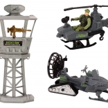 Das Set enthält einen Roller, ein Geländemotorrad, einen Hubschrauber und weiteres Zubehör für schnelle Missionen in unterschiedlichen Umgebungen.