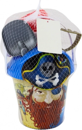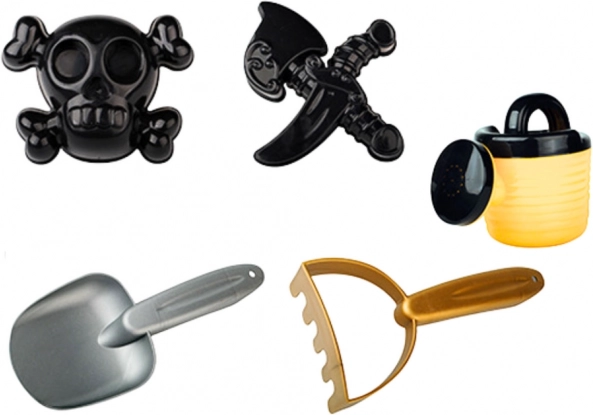 Piratenset für den Sand – Eimer, Gießkanne, Siebdeckel und Förmchen (6-teilig)