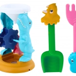 Dieses farbenfrohe Dinosaurier-Sandset macht jeden Nachmittag am Strand oder im Sandkasten zu einem Abenteuer. Kinder lieben die Sandmühle mit Dinosauriermotiv, durch die sie Sand sieben oder Wasser gießen können und dabei beobachten, wie sich die Schaufeln drehen. Die Förmchen helfen, originelle Bauwerke und Dinosaurierspuren zu gestalten und zugleich die Feinmotorik und Fantasie zu fördern.