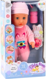 Entdecken Sie den Zauber der Baby-Puppe mit rosa Kleidung, verziert mit buntem Hasenmotiv, die das Lieblingsspielzeug jedes Kindes werden wird. Diese Puppe regt nicht nur zum Spielen an, sondern fördert auch die kindliche Fantasie durch ihre realistischen Funktionen.