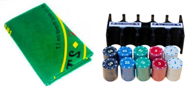 Poker-und-Blackjack-Set – 500 Chips, 2 Kartendecks, Würfel, Spielmatte, abschließbarer Koffer
