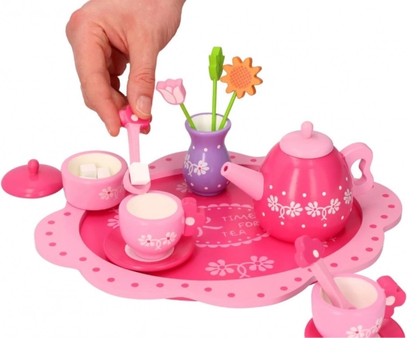 Holz-Teeset mit Blumenmotiv für Kinder