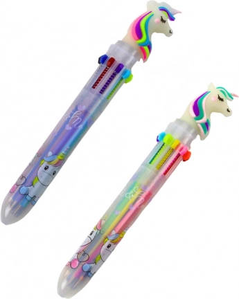 Dieser mehrfarbige Kugelschreiber mit niedlichem Einhornmotiv vereint verspieltes Design und Praktikabilität. Mit einem Klick wählen Sie aus 10 verschiedenen Tintenfarben, sodass Sie alles für Schreiben, Unterstreichen und Zeichnen jederzeit griffbereit haben.