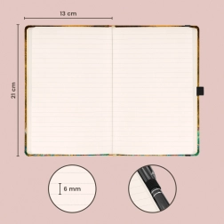 Der feste Einband schützt den Inhalt in der Tasche und auf Reisen, das Gummiband hält das Notizbuch sicher geschlossen, die integrierte Schlaufe sorgt dafür, dass Sie den Stift stets griffbereit haben, und die Innentasche fasst Visitenkarten oder Kleinigkeiten. 172 Seiten gelben Papiers bieten ausreichend Platz für alle Ideen.