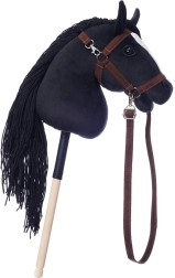 Dieses Steckenpferd ist mit einer markanten schwarzen Mähne und einem weißen Streifen ausgestattet, was ihm eine realistische Optik verleiht. Es ist ideal für imaginäre Ausritte und Trainings.