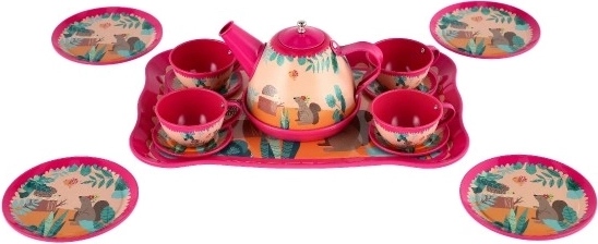 Das Set enthält eine Kanne, Tassen und Untertassen mit verspielten Tier- und Blumenmotiven. Kinder können Freunde, Puppen oder Kuscheltiere einladen und dabei Kommunikation, Fantasie und Feinmotorik trainieren. Geeignet für Kinder ab 3 Jahren.