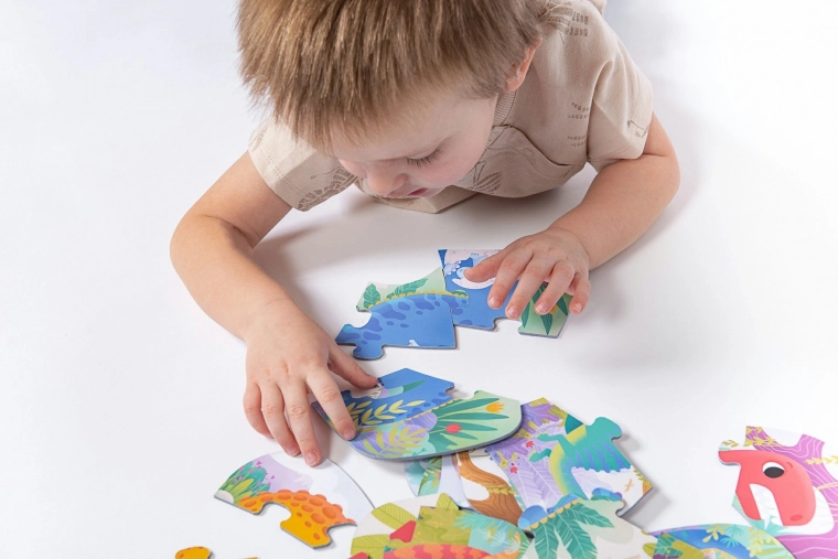 Entdecken Sie die Faszination des Puzzelns mit bunten Dinosauriern, die Kinder auf den ersten Blick begeistern. Große, stabile Teile sind kleinen Händen angepasst, und clevere Schlossformen führen Kinder zur richtigen Lösung. Jeder Dinosaurier ist ein eigenes Puzzle mit vereinfachter Form für leichtes Verständnis.