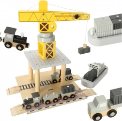 Kinder werden diesen hölzernen Hafenturmkran lieben, der ihnen die Möglichkeit bietet, Container von Schiffen auf Autos und Züge zu verladen. Dieses Set bietet viele Komponenten, die das Spielen verschiedener Szenarien ermöglichen und die Fantasie und manuellen Fähigkeiten Ihres Kindes fördern.