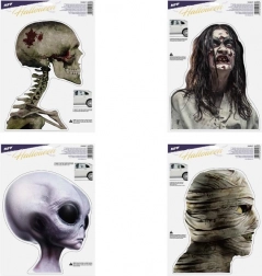 Die Aufkleber eignen sich ideal für Fenster, Vitrinen, Spiegel und Fliesen und dank der Wiederverwendbarkeit nutzen Sie sie Jahr für Jahr. Die Motive werden je nach aktueller Lagerverfügbarkeit geliefert (eine konkrete Auswahl ist nicht möglich) – freuen Sie sich auf gruselige Totenköpfe, Mumien, Zombies und andere Halloween-Motive.