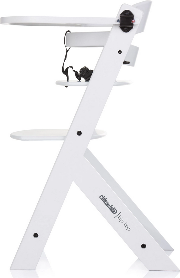 Die sichere und komfortable Nutzung wird durch die ergonomisch geformte Rückenlehne, das abnehmbare Tablett zur einfachen Pflege und den zuverlässigen 3-Punkt-Sicherheitsgurt unterstrichen. Die hochwertige Holzkonstruktion in modernem Weiß fügt sich perfekt in jedes Interieur ein und bietet Stabilität im täglichen Gebrauch.