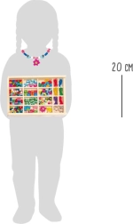 Entdecke eine bunte Welt der Fantasie mit den Holzperlen im Box-Set Vivien. Kinder gestalten mühelos einzigartige Ketten, Armbänder und Anhänger, während sie Feinmotorik und Konzentration trainieren. Der praktische transparente Deckel hält alle Teile sicher an Ort und Stelle und ermöglicht einen schnellen Überblick über den Inhalt.