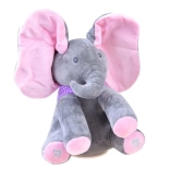 Dieser Plüschelefant ist das ideale Spielzeug für Kinder, die Musik und interaktiven Spaß lieben. Beim Drücken der rechten Pfote erklingt „Do Your Ears Hang Low“, der Elefant singt und bewegt die Ohren. Die linke Pfote startet „Peek-A-Boo, where are you?!“ und der kleine Elefant fordert zum Versteckspiel auf.