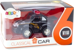 Dieses elegante schwarze Polizeiauto im Maßstab 1:38 wird jeden Liebhaber von automobilen Klassikern begeistern. Es ist mit einem Schwungradantrieb ausgestattet, der eine schnelle Vorwärtsbewegung beim Zurückziehen ermöglicht.
