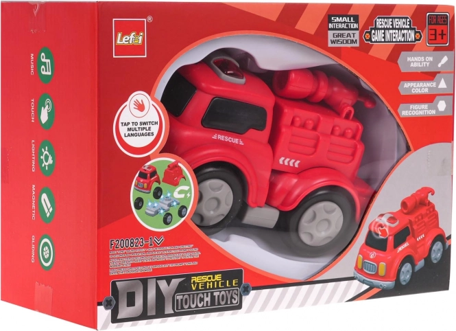 Entdecken Sie den interaktiven Feuerwehrwagen mit Magneten für Kinder ab 3 Jahren. Hochwertige Verarbeitung, Klang- und Lichteffekte sorgen für spannenden Spielspaß. Ideal zum Zerlegen und Zusammenbauen!