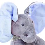 Der linke Fuß startet „Peek‑a‑Boo, where are you?!“ – der Elefant fordert Kinder zum Versteckspiel und zur Interaktion auf.