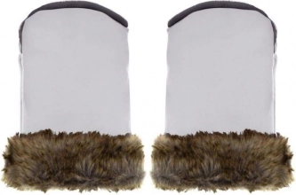 Entdecken Sie Rukavice MoMi für Kinderwagen Grau, wasserabweisende Handschuhe mit universeller Größe, geeignet für die meisten Kinderwagenmodelle mit abnehmbarem Fell.
