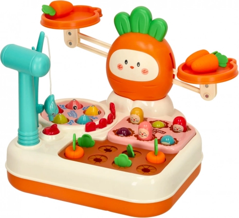 Kinder Lernspielzeug 4-in-1: Karotten-Waage mit Angeln und Hammer-Spiel