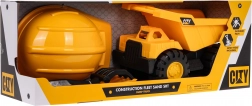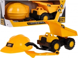 Zum Set gehört ein Schutzhelm und Werkzeuge wie Schaufel und Rechen, die ein vollständiges Bauerlebnis garantieren.