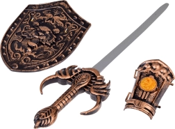 Ein 50 cm langes Schwert und ein 29 x 20 cm großer Schild ermöglichen es den Kindern, sicher gegen imaginäre Feinde zu kämpfen, sich zu schützen und Kampfsituationen wie echte Ritter zu erleben.