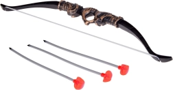 Der Bogen mit einer Länge von 44 cm ist ideal, um das Bogenschießen mit sicheren 24 cm langen Pfeilen zu üben, die für Kinderspiele konzipiert sind. Ein Köcher in den Maßen 13 x 9 cm ergänzt das ritterliche Aussehen.