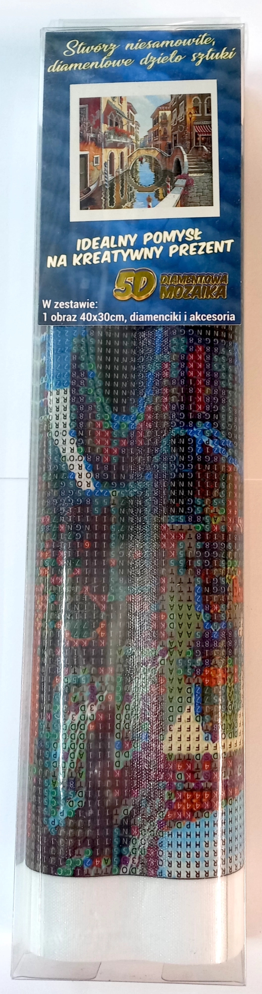 Kreativset zur Herstellung eines mosaikartigen Diamantbildes – garantiert stundenlange, angenehme Entspannung. Das Aufkleben kleiner, diamantförmiger Steinchen macht allen Spaß, unabhängig vom Alter, sodass Sie die Bilder gemeinsam mit Familie oder Freunden gestalten können. Das fertige Werk können Sie anschließend in einem der von uns angebotenen Rahmen einrahmen. Diamantmalerei ist eine großartige Methode zur Entspannung – kreativer Spaß für jeden. Mit dem Applikationsstift setzen Sie Steinchen für Steinchen auf die markierten Stellen der Leinwand. Im Set finden Sie alles Nötige – Leinwand, Stift, Steinchen, Schälchen und Wachs. Für ein perfektes Ergebnis sind keine künstlerischen Fähigkeiten erforderlich. Ein tolles Geschenk für jeden Anlass. Das fertige Bild kann eingerahmt werden (Rahmen ist nicht im Lieferumfang enthalten). Lieferumfang: Leinwand mit vorgedrucktem Bild, Stift zum Aufnehmen der Steinchen, Schälchen zum Ausschütten der Steinchen, Wachs zum Aufnehmen, Set farbiger Steinchen Diamantmalerei – Anleitung: Die Oberseite der Leinwand ist mit Kleber beschichtet und mit einer transparenten Folie abgedeckt. Ziehen Sie die Folie nach und nach in Abschnitten ab, entsprechend Ihrem Arbeitsfortschritt. Wenn die gesamte Folie auf einmal entfernt wird, kann die Klebeschicht verschmutzen und die Steinchen haften eventuell nicht mehr so gut. Die Leinwand enthält Symbole, die in der beiliegenden Legende erklärt sind und auf den entsprechenden, nummerierten Beutel mit Steinchen verweisen. Schütten Sie die Steinchen aus dem jeweiligen Beutel in das Schälchen. Nehmen Sie Wachs in die Spitze des Stifts auf – so haften die Steinchen leicht am Stift. Setzen Sie die Steinchen mit dem Stift auf das Bild. Nach dem Aufkleben einer Farbe schütten Sie die übrigen Steinchen zurück in den Beutel und fahren mit der nächsten Farbe fort.
