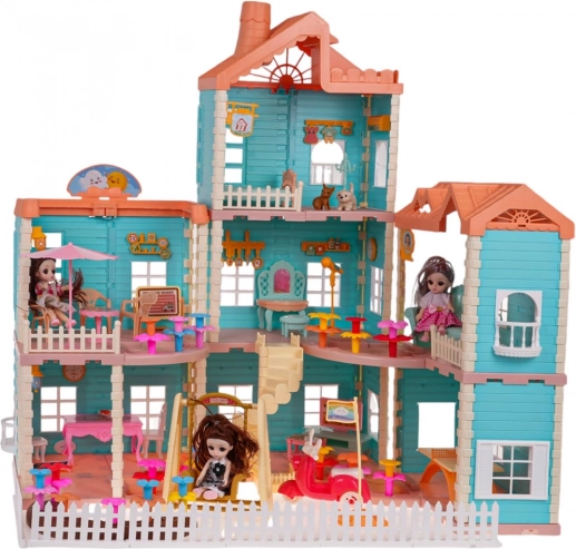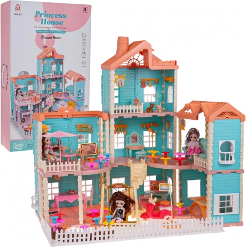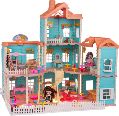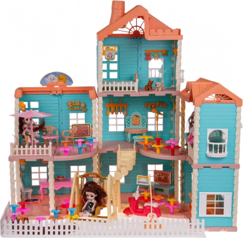 Im Set finden Sie eine vollständige Ausstattung inklusive 3 Puppen mit langem Haar, das sich gut kämmen lässt, Möbeln und Outdoor-Accessoires wie Schaukel, Sonnenschirm und sogar einem Tisch für Ping‑Pong. Das Haus besteht aus hochwertigem Kunststoff in lebendigen Farben, die sofort ins Auge fallen.