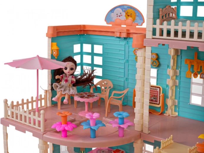 Diese großzügige Villa bietet Kindern unendliche Spielmöglichkeiten: Küche, Schlafzimmer, Wohnzimmer, Musikecke und sonnige Terrasse werden von zahlreichen Blumen und Details ergänzt. Zwei leuchtende Lampen und der Schornsteindampf-Effekt schaffen eine einzigartige Atmosphäre, die jede Geschichte zum Leben erweckt.