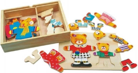 Bino Anziehpuzzle ist ein hervorragendes Hilfsmittel zur Förderung der Kreativität und Feinmotorik von Kindern. Es enthält viele farbenfrohe Teile, die die Fantasie anregen, um die Bärin und ihr Bärenkind je nach Laune und Wetter zu kleiden.