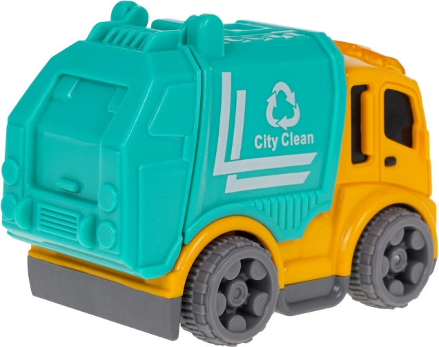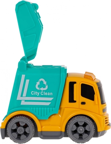 Der Müllwagen mit City Clean/Recycling-Aufdruck hat eine öffnende Klappe und leicht laufende Räder – ideal für Müllabhol-Spiele und das Entdecken von Umweltthemen.