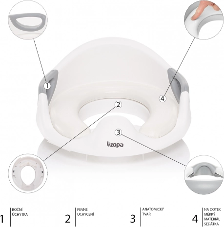 WC-Sitz ZOPA Coach ist ein praktischer und bequemer Helfer beim Übergang vom Töpfchen zur normalen Toilette. Hergestellt aus hochwertigem und strapazierfähigem BPA-freiem Kunststoff, bietet es maximalen Komfort und Stabilität für Kinder bis 34 kg dank einer weichen, wasserfesten Einlage und clever platzierten Griffen.