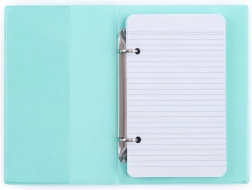 Kompaktes Notizbuch im A6-Format mit robustem PVC-Einband in elegantem Grün. Ausgestattet mit einer praktischen 2-Ring-Mechanik und 100 liniertem Blättern für bequemes Schreiben zu Hause, in der Schule und im Büro.