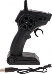 Die kabellose 2,4-GHz-Funksteuerung bietet eine sanfte, störungsfreie Bedienung – Vorwärts-/Rückwärtsfahrt, Lenken mit Trimmoption und präzise Reaktion auf Eingaben. Die Stromversorgung über einen 3,7 V 1200 mAh Akku (im Lieferumfang) verlängert die Spielzeit, das Laden erfolgt über das mitgelieferte USB-Kabel.