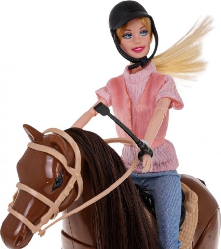 Bewegliche Arme, Beine und Kopf ermöglichen das einfache Platzieren in den Sattel und verschiedene Reitposen. Das lange Haar lädt zum Kämmen und Stylen ein.