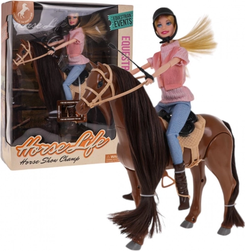 Dieses attraktive Set verbindet die Welt der Puppen und Pferde – ideal für kleine Reitfans. Die Puppe hat bewegliche Arme, Beine und einen beweglichen Kopf sowie wunderschönes langes Haar. Das Pferd wird mit 3× AA-Batterien (enthalten) betrieben und kann sich vorwärts bewegen, mit dem Kopf nicken und wiehhern, wodurch das Spiel besonders authentisch wirkt.