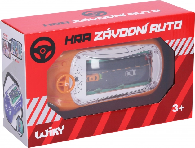 Rennspielauto in orange mit Licht- und Soundeffekten; einfache Steuerung mit Lenkrad. Weichen Sie den Autos aus. Batterien nicht enthalten.