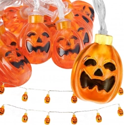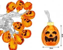 Effektvolle Lichterkette mit 10 LEDs in orangefarbenen Kunststoffkürbissen – ideal zur Dekoration von Fenstern, Türen, Kamin, Regalen, Balkon oder Kinderzimmer. Gleichmäßiges Licht und sicherer Betrieb mit 2× AA (nicht enthalten) sorgen für komfortable Nutzung ohne Kabelsalat.