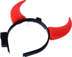 Toller leuchtender Haarreif mit Teufelshörnern, der auf Knopfdruck blinkt. Enthält 3× LR44-Batterien, sodass Sie ihn sofort verwenden können. Ideal für Karneval, Weihnachtsfeiern und Themenpartys. Geeignet ab 3 Jahren.