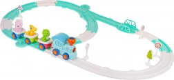 Das Set mit 33 Teilen besteht aus hochwertigem Kunststoff in leuchtenden Farben, die zum Spielen einladen und die Entwicklung der Feinmotorik, der Vorstellungskraft und der Farbwahrnehmung unterstützen. Das einfache Zusammenstecken der Schienen, Verkehrsschilder und weiteres Zubehör helfen Kindern, die Welt des Verkehrs spielerisch zu entdecken.