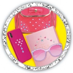 Ein lustiges Kreativset für kleine Fashionfans und kreative Kinder enthält einen praktischen Applikator und 80 selbstklebende Steinchen. Damit lassen sich Haare sowie Tagebuch, Handyhülle oder Geldbörse ganz leicht verzieren. Ein ideales Geschenk für Kinder ab 5 Jahren, das Kreativität und Feinmotorik fördert.
