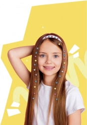 Lieferumfang: Applikator, 80 glitzernde Steinchen, Zubehör. Empfohlen für Kinder ab 5 Jahren; bei Anwendung im Haar unter Aufsicht einer erwachsenen Person.
