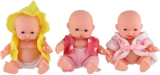 Babypuppe 12 cm – fester Kunststoffkörper, 3 Varianten, Box mit 12 Stück