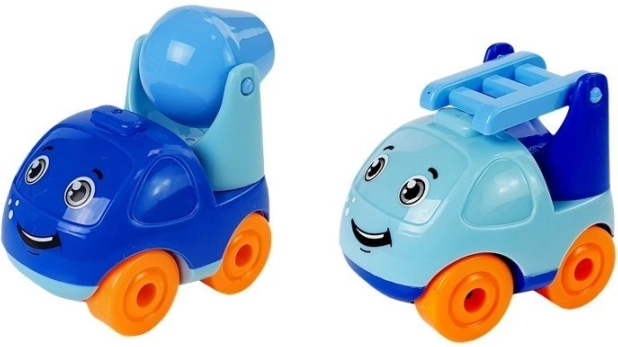 Im Set enthalten sind ein Betonmischer und ein Feuerwehrauto mit Leiter – ideale Partner für Geschichten über Bauen und Retten.