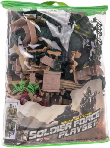 Großes Set mit Soldatenfiguren und Militärfahrzeugen für Kinder ab 3 Jahren. 400 Teile, 250 Figuren, Panzer, Flugzeuge, Schiffe und Basis in einer Reißverschlusstasche. Robuster Kunststoff.