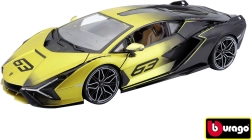 Genießen Sie eine erstklassige Replik des legendären Supersportwagens LAMBORGHINI Sián FKP 37 von Bburago. Das Modell im Maßstab 1:18 bietet realistische Proportionen, detailgetreues Interieur und Motorraum sowie eine präzise Lackierung in kontrastierender gelb‑schwarzer Kombination. Dank der zu öffnenden Türen, der Motorhaube und des Kofferraums können Sie jedes Detail aus nächster Nähe bewundern.