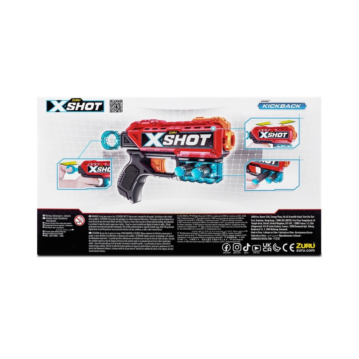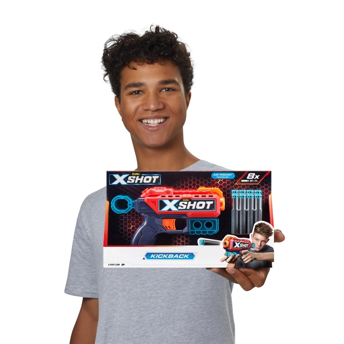 Das X-Shot Kickback Abschussgerät ist auf Geschwindigkeit und Wendigkeit ausgelegt, ohne Präzision und Schusskraft einzubüßen. Kehren Sie dank seiner Fähigkeit, Pfeile bis zu 27 Meter weit zu schießen, blitzschnell ins Spiel zurück. Genießen Sie realistischen Spielspaß durch die Rückstoßfunktion, die echten Schuss simuliert!