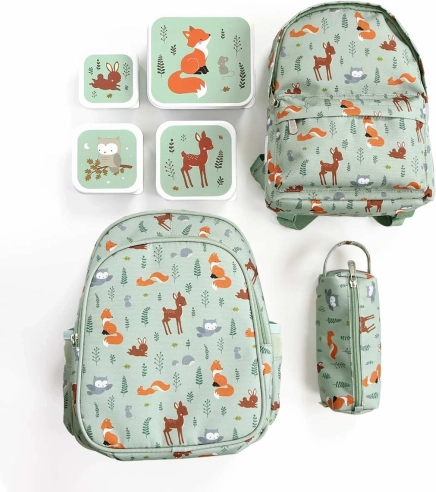 Dieses praktische Set von A Little Lovely Company bringt ein verspieltes Waldfreunde‑Design in der beliebten grünen Variante. Vier Größen eignen sich perfekt für Mittagessen, Snacks, Obst und Kleinigkeiten. Die Boxen können einfach ineinander verstaut werden und benötigen so im Schrank nur minimalen Platz.