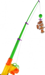 .Das Set enthält zwei Angelruten, 11 Fische und Zubehör. Die Ruten verfügen über eine montierte Spule, mit der die Schnur abgesenkt oder angehoben wird, und am Ende ist ein Magnet zum Fangen der Fische befestigt. Das erfordert vom kleinen Angler eine ziemlich hohe Präzision.