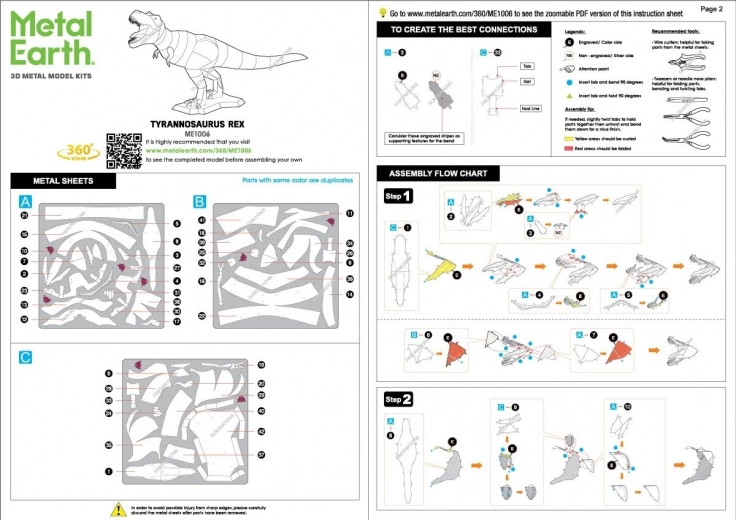 Der Aufbau erfolgt durch Biegen und Einrasten der Teile mittels Laschen – ganz ohne Klebstoff. Für eine komfortable Montage empfehlen wir kleine Seitenschneider und feine Flachzangen (nicht enthalten). Das fertige Modell misst ca. 18,5 × 9,6 × 6 cm und wird zum stilvollen Highlight für Dinosaurierliebhaber, Modellbauer und Technikbegeisterte.
